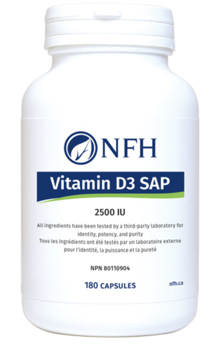 Vitamin D3 SAP 2500 IU Capsules from NFH provides high potency vitamin D₃ (cholecalciferol) per capsule that can support optimal health.