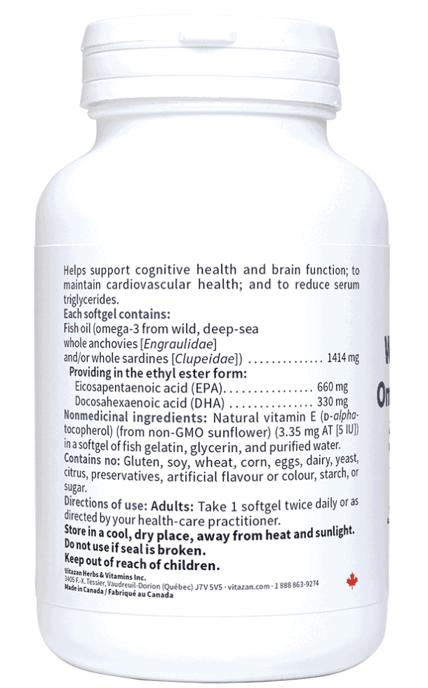 Wild Omega 3 from Vitazan (EPA 660 – DHA 330) helps support cognitive health and brain function. Vitazan’s Wild Omega 3 (EPA 660 – DHA 330) supports cardiovascular health and helps to reduce serum triglycerides.