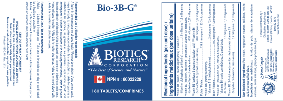 Bio-3B-G by Biotics Research is a a unique vitamin-B blend supplement with antioxidants.