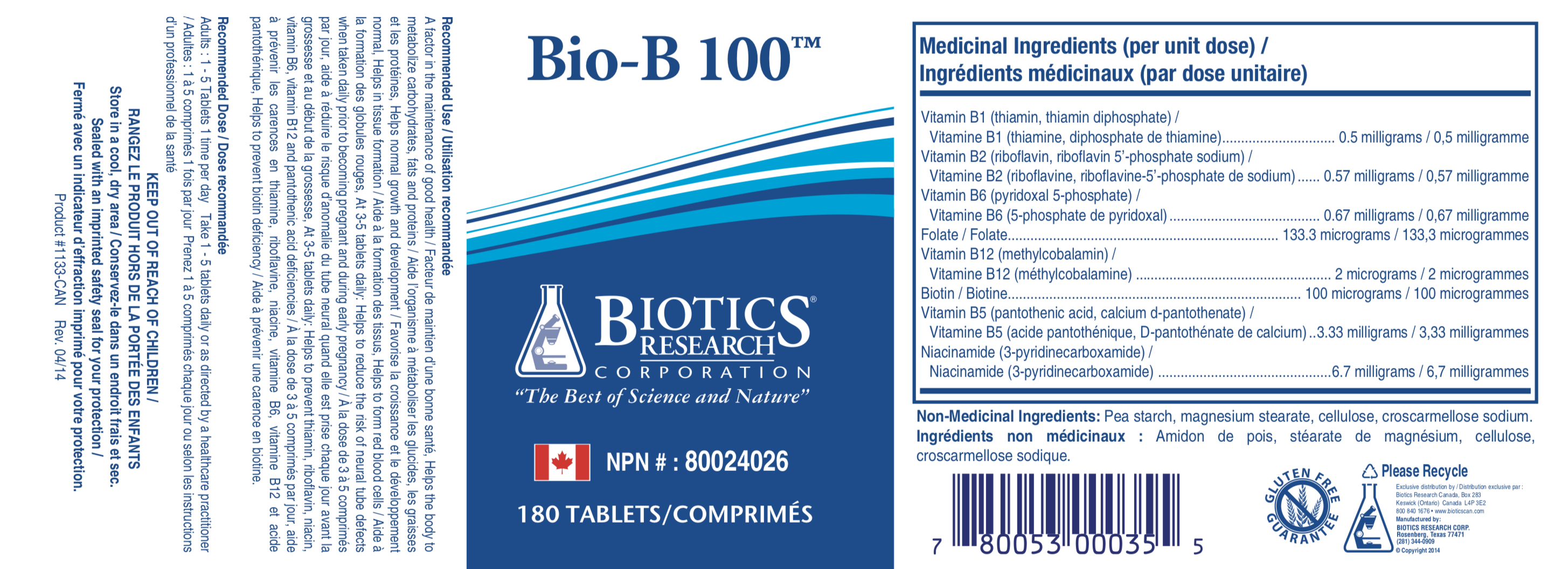 Bio-B 100 by Biotics Research is a natural dietary supplement that contains a unique blend of B-Complex vitamins and antioxidant enzymes. These vitamins and enzymes work together to support healthy energy levels, promote healthy brain function, and support the body’s natural defenses against harmful free radicals.