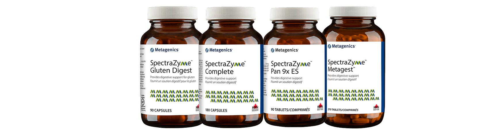 Metagenics offers a complete line of Spectrazyme enzyme supplements for individual health needs, including broad spectrum digestive support, gluten sensitivity, and stomach acid support including: SpectraZyme Complete, Spectrazyme Gluten Digest, Metagest, SpectraZyme Pan 9x and Pan 9x ES. These enzymes contain ingredients that have been tested in laboratory and clinical studies. Each enzyme formula is carefully manufactured to assure enzyme activity and potency for reliable results. Metagenics manufacturing facilities is state of the art with enhanced environmental controls. Their enzymes are processed under special conditions so that the delicate enzyme constituents remain intact. Setting quality standards for the industry for over 30 years, Metagenics tests each product batch for enzyme activity—a better indicator of potency than weight.