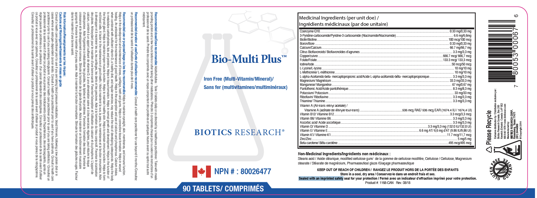 Bio-Multi Plus Iron Free by Biotics Research is a comprehensive vitamin and mineral supplement, that is carefully formulated to support overall well-being, without the addition of iron.
