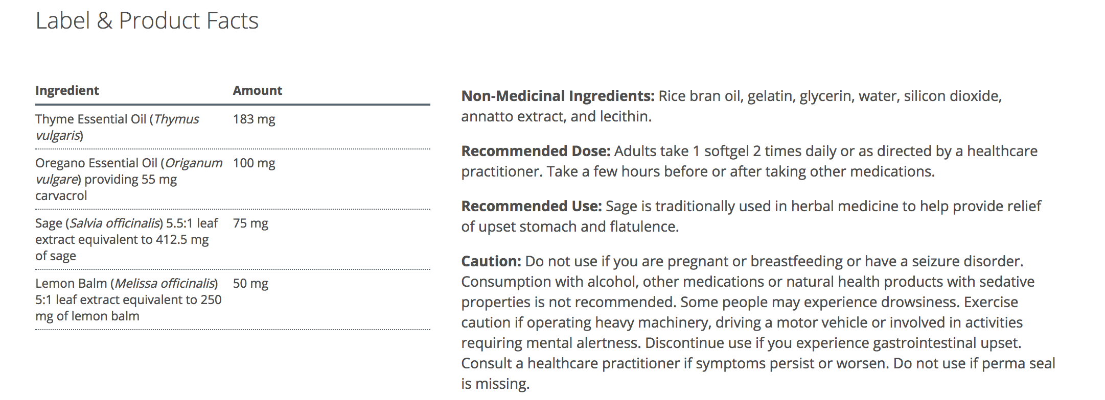 Candibactin-AR by Metagenics features concentrated essential oils from red thyme and oregano blended with other herbal extracts from the aromatic mint family. The traditional use of red thyme oil is focused on supporting the health of the gastrointestinal and upper respiratory tracts. The encapsulation of these oils in a softgel allows them to be blended with dry leaf extracts of sage and lemon balm. These herbs are added to the formula for their potent antioxidant properties, which protect and stabilize the fragile essential oils, as well as for their added benefit in supporting healthy digestive function.