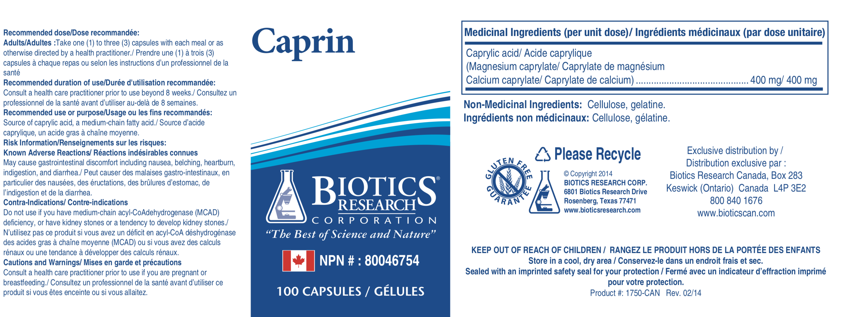 Caprin by Biotics Research provides a source of Caprylic acid (as calcium & magnesium caprylate), a medium-chain fatty acid.