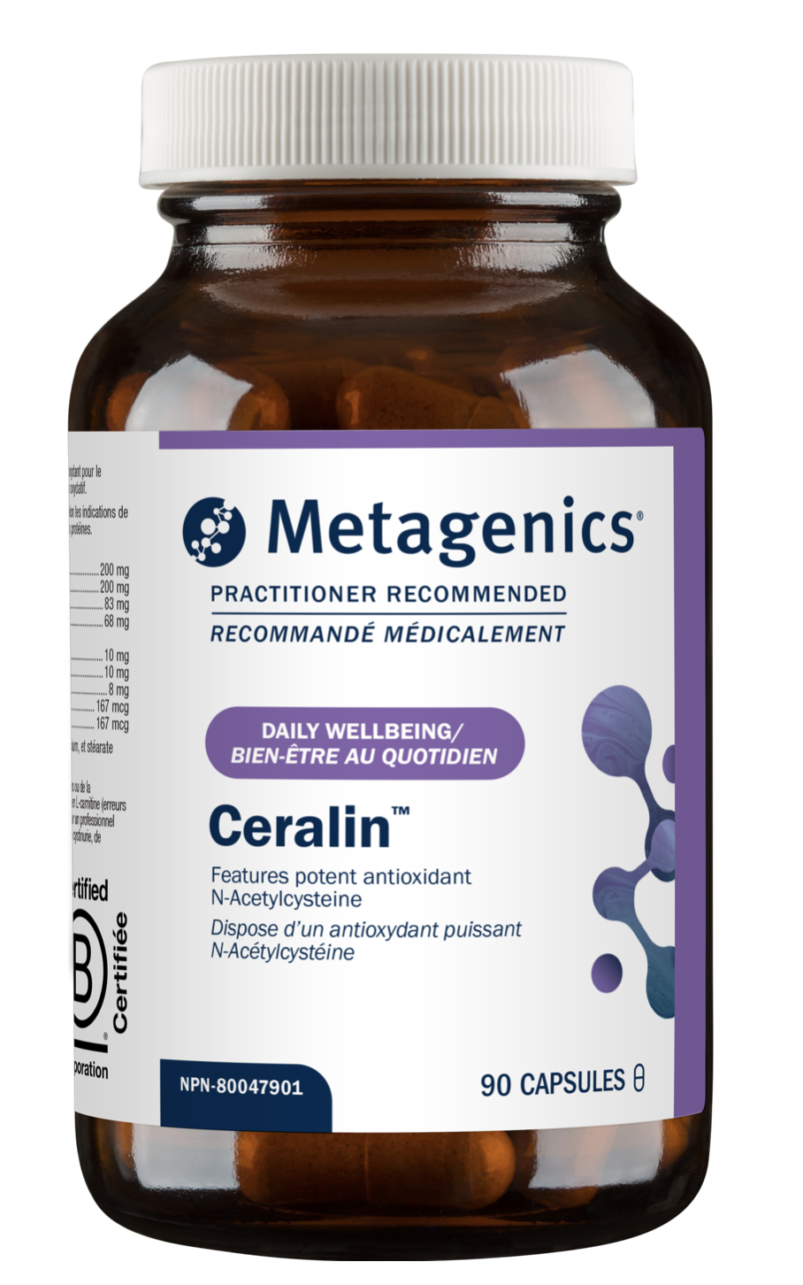 Ceralin Forte by Metagenics is formulated to provide multidimensional support for brain and nerve health by protecting against oxidative stress, as well as supporting healthy mitochondrial function, methylation, homocysteine metabolism , and circulatory function. This advanced formula features L-5-MTHF (a bioactive form of folate), NAC, and acetyl-L-carnitine along with concentrated grape seed extract for enhanced protection.