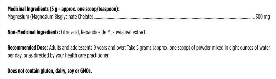 Magnesium Glycinate Powder contains highly absorbable magnesium chelate to support healthy magnesium status. This product is pleasant tasting with no added flavour and is sweetened only with stevia leaf powder. It can be easily mixed in water or any other beverage. It provides 300 mg of magnesium in each 5-gram serving.