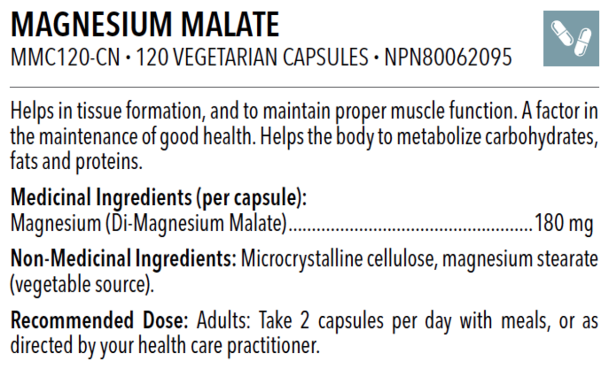 Magnesium Malate is a highly bioavailable form of magnesium. It contains di-magnesium malate, which is magnesium bound to malic acid.