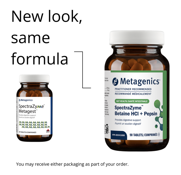 SpectraZyme Metagest from Metagenics is now called SpectraZyme Betaine HCI + Pepsin