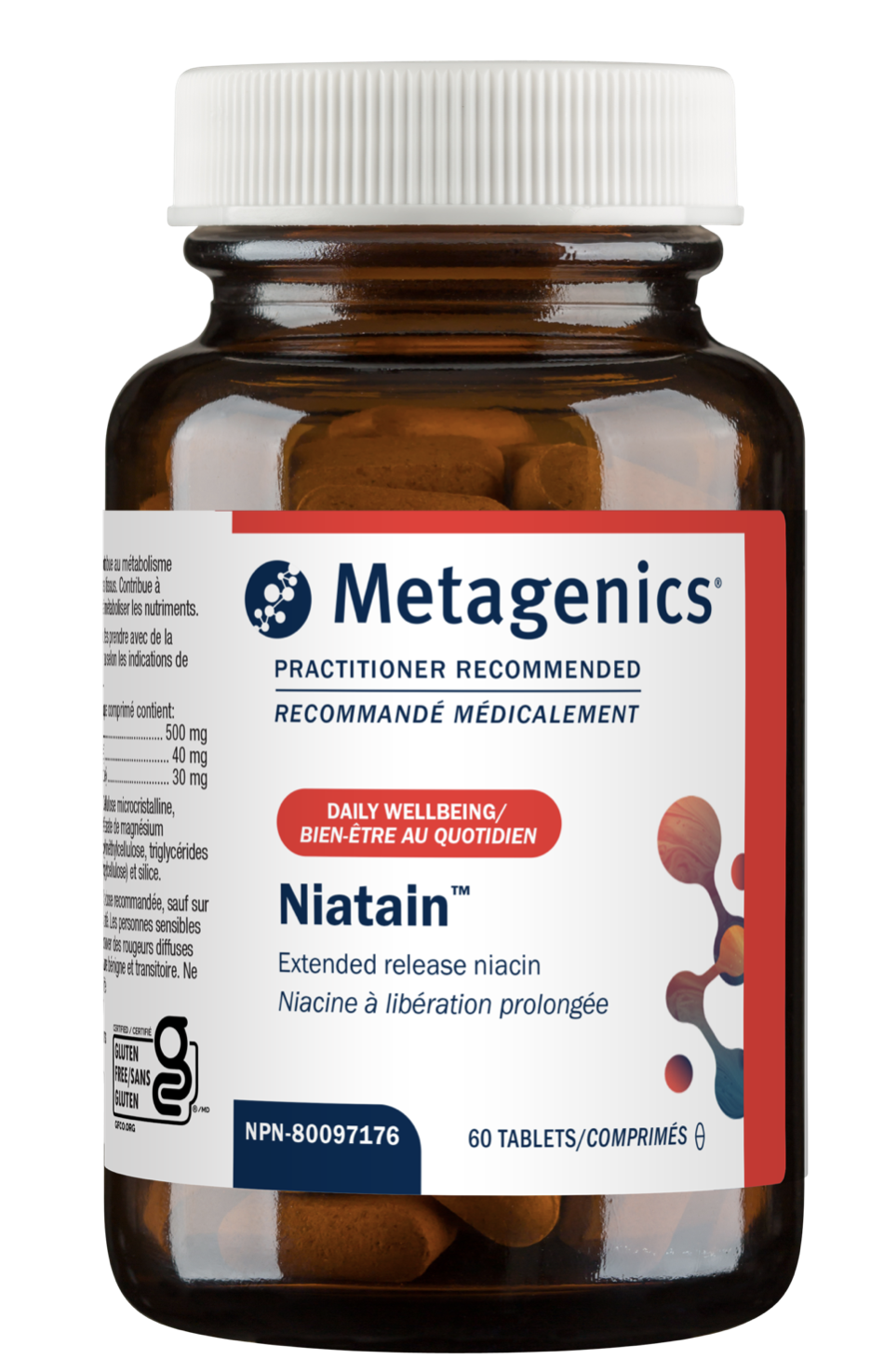 Niatain by Metagenics features a high quality form of extended release nicotinic acid designed to reduce the flushing normally associated with niacin intake. It has been formulated with a non-wax coating for effective dissolution and tested for reduced flushing. For decades, niacin has been extensively researched and endorsed as support for healthy lipid metabolism .