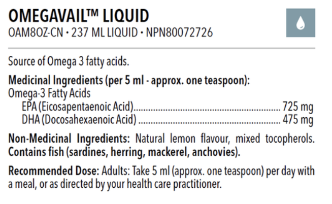 OmegAvail Liquid is a high potency omega 3 oil, featuring our TruTG fish oil in the form found in nature, and is still presented in a pleasant tasting, lemon flavored liquid.