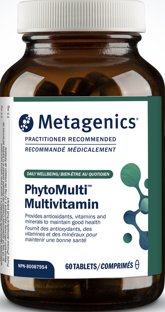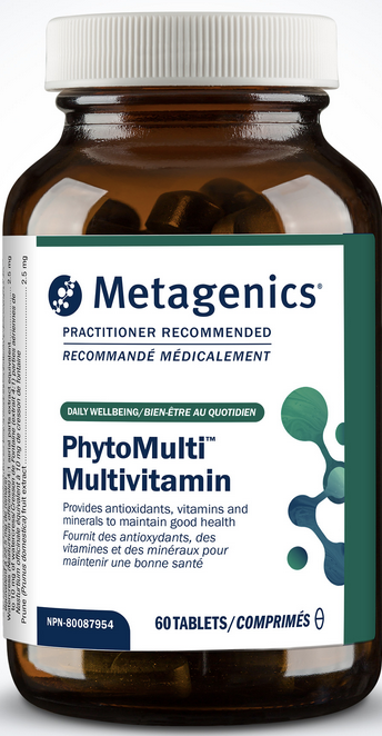 PhytoMulti without Iron by Metagenics takes you beyond basic wellness support. It has a proprietary blend of 13 concentrated extracts and phytonutrients with scientifically tested biological activity to protect your cells and maintain DNA stability–activating your health potential like no other supplement.