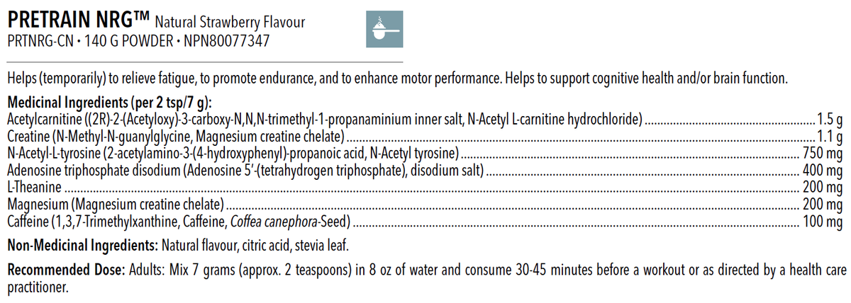 PreTrain NRG from Designs For Health provides a Pre-workout formula for optimal sports performance