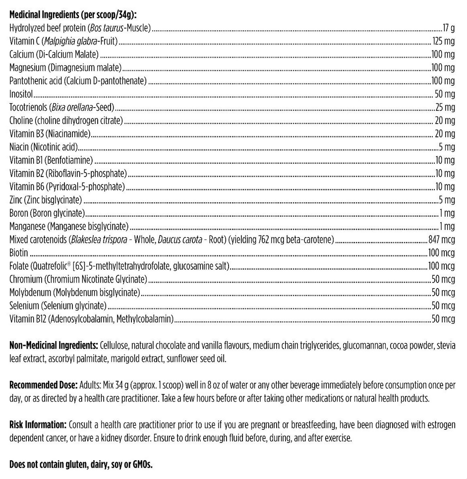Pure PaleoComplete is a nutrient-dense meal supplement with complete protein, healthy fats, a very low glycemic impact, and nutrients predominantly in their bioidentical forms. It features HydroBEEF™, a highly concentrated pure bone broth protein isolate sourced from animals raised in Sweden without hormones, and fed a diet entirely free of GMO grains, grasses, hay, and/or ensilage. The protein is produced through an exclusive hydrolysis and ultra-filtration process that enables the protein to be hydrolyzed or ‘split’ into a high concentration of functional peptides. Delivering protein in the form of peptides allows for easier absorption and assimilation.