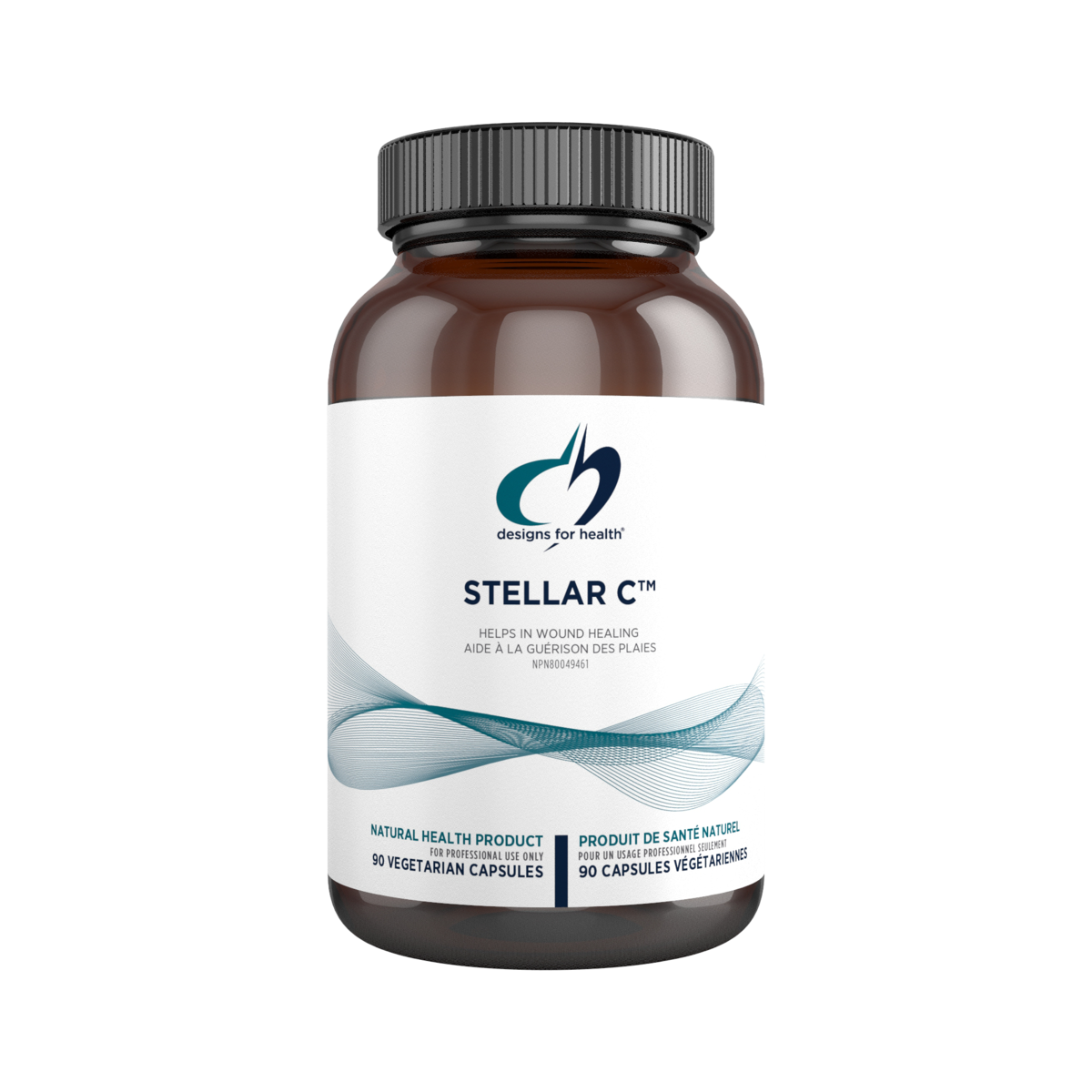 Stellar C from Designs For Health is rich in vitamin C (from a mixture of ascorbic acid and acerola fruit) and plant bioflavonoids (hesperidin, rutin, quercetin and mixed citrus bioflavonoids), known for their immunoprotective properties.