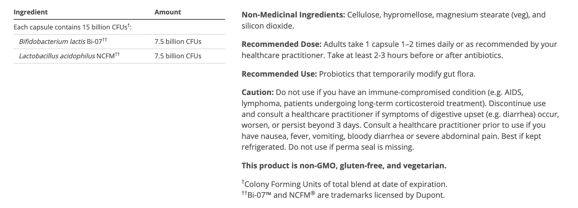 UltraFlora Balance by Metagenics provides a dairy-free base for a proprietary blend of highly viable, pure strains of L. acidophilus NCFM® and B. lactis Bi-07—“friendly” bacteria that have been shown to support a healthy intestinal environment and immune health . Backed by the Metagenics ID Guarantee for purity, clinical reliability, and predicted safety via scientific identification of strains with established health benefits.