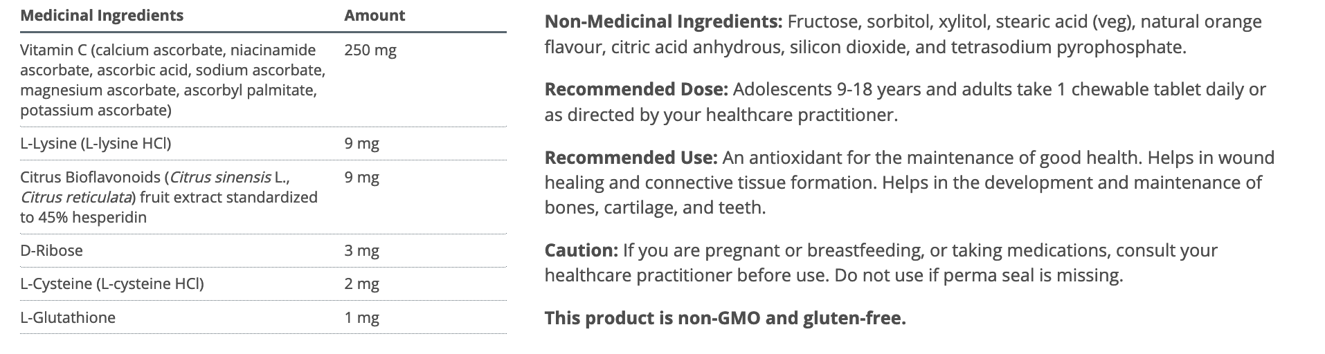 Ultra C Chewable from Metagenics is terrific for kids or adults who would rather not swallow tablets or capsules