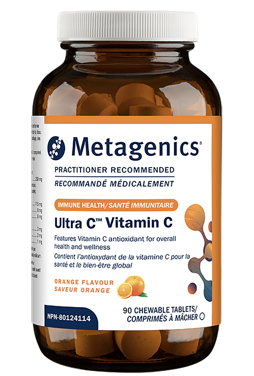 Ultra C Chewable from Metagenics is an exclusive, patented vitamin C formula in a great tasting natural Orange Blast flavor—that’s kid tested and approved! In addition to providing support for healthy immune function and antioxidant protection, vitamin C is essential for the production of collagen and connective tissue.* One tablet of Ultra Potent-C Chewable provides the same amount of vitamin C found in four oranges.