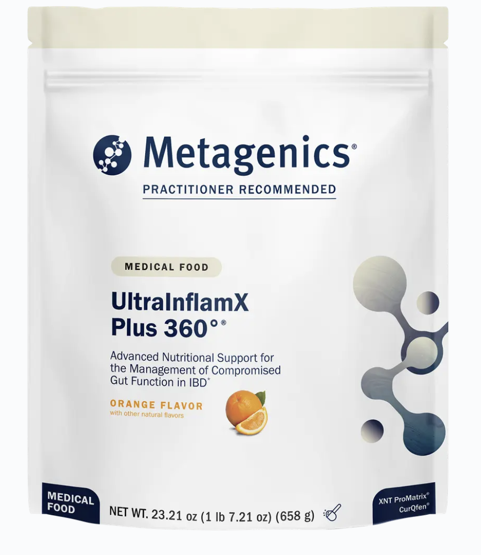 UltraInflamX Plus 360 (Orange) is formulated to provide strategic macro- and micronutrient support for patients with compromised gut function resulting from inflammatory bowel disease.